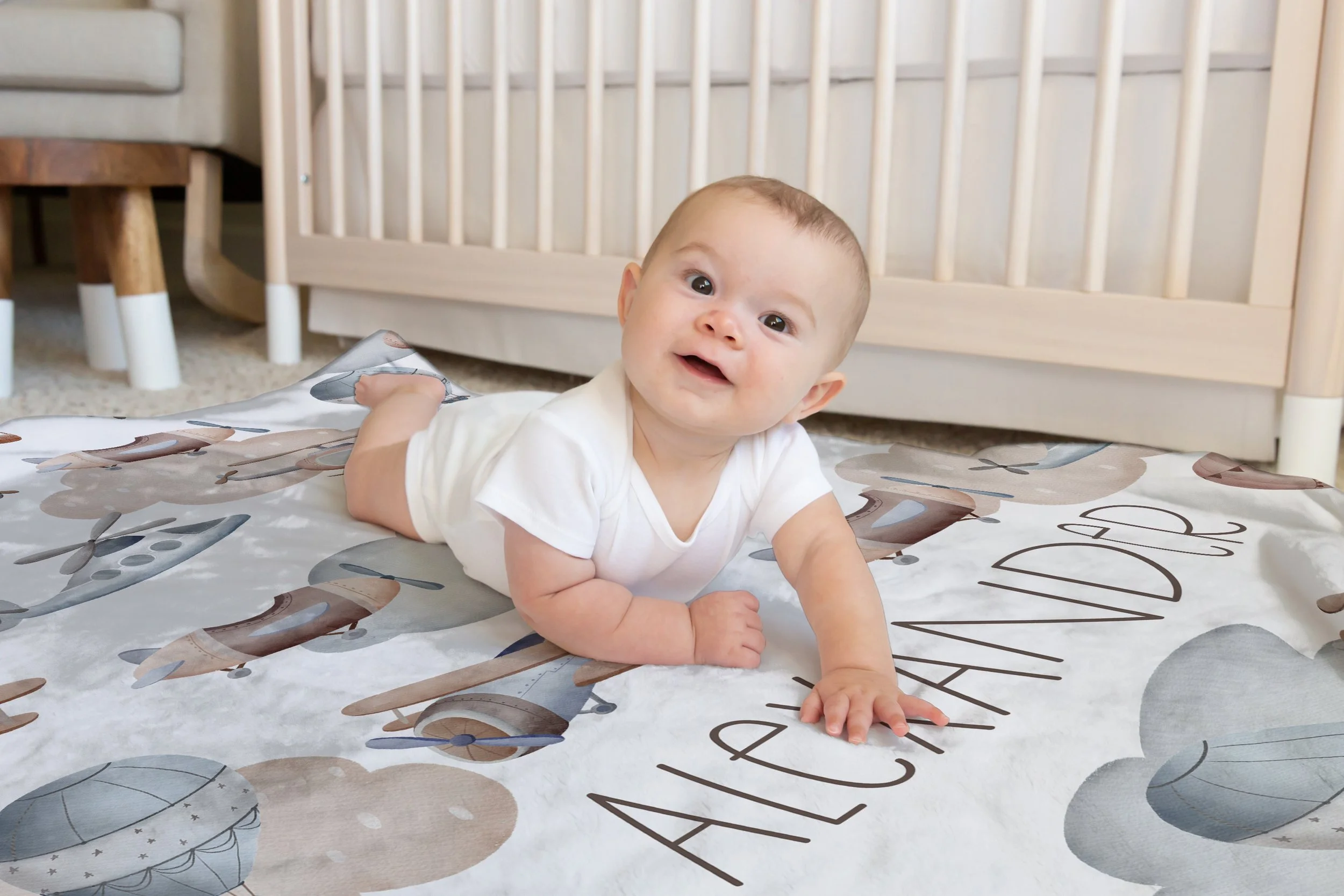 Skybound Dreams: Neutral Airplane Personalized Jersey Crib Sheet Skybound Dreams: Neutral Airplane Personalized Jersey Crib Sheet Skybound Dreams: Neutral Airplane Personalized Jersey Crib Sheet