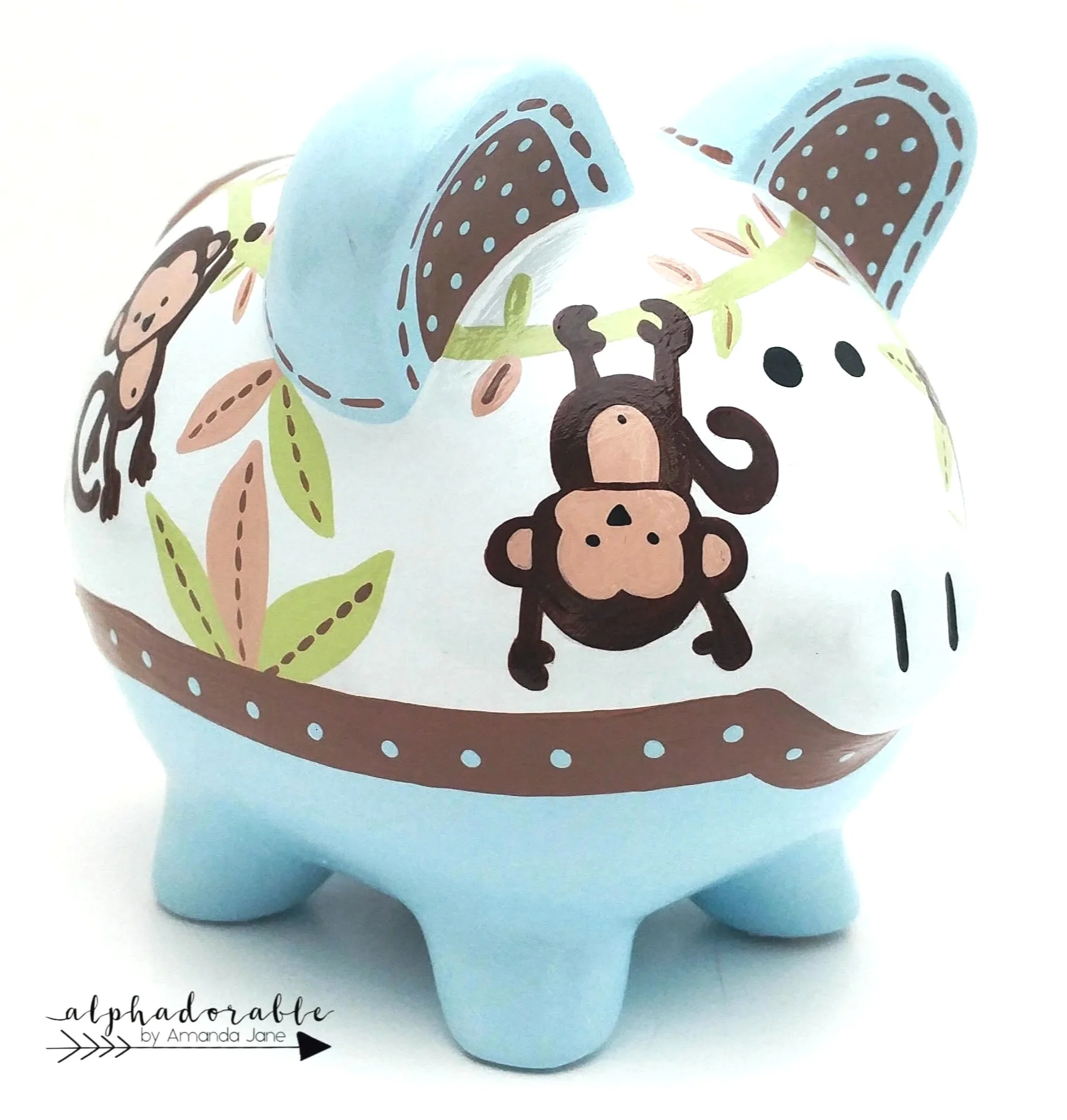 Monkey Mischief: Jungle piggy bank in Blue
