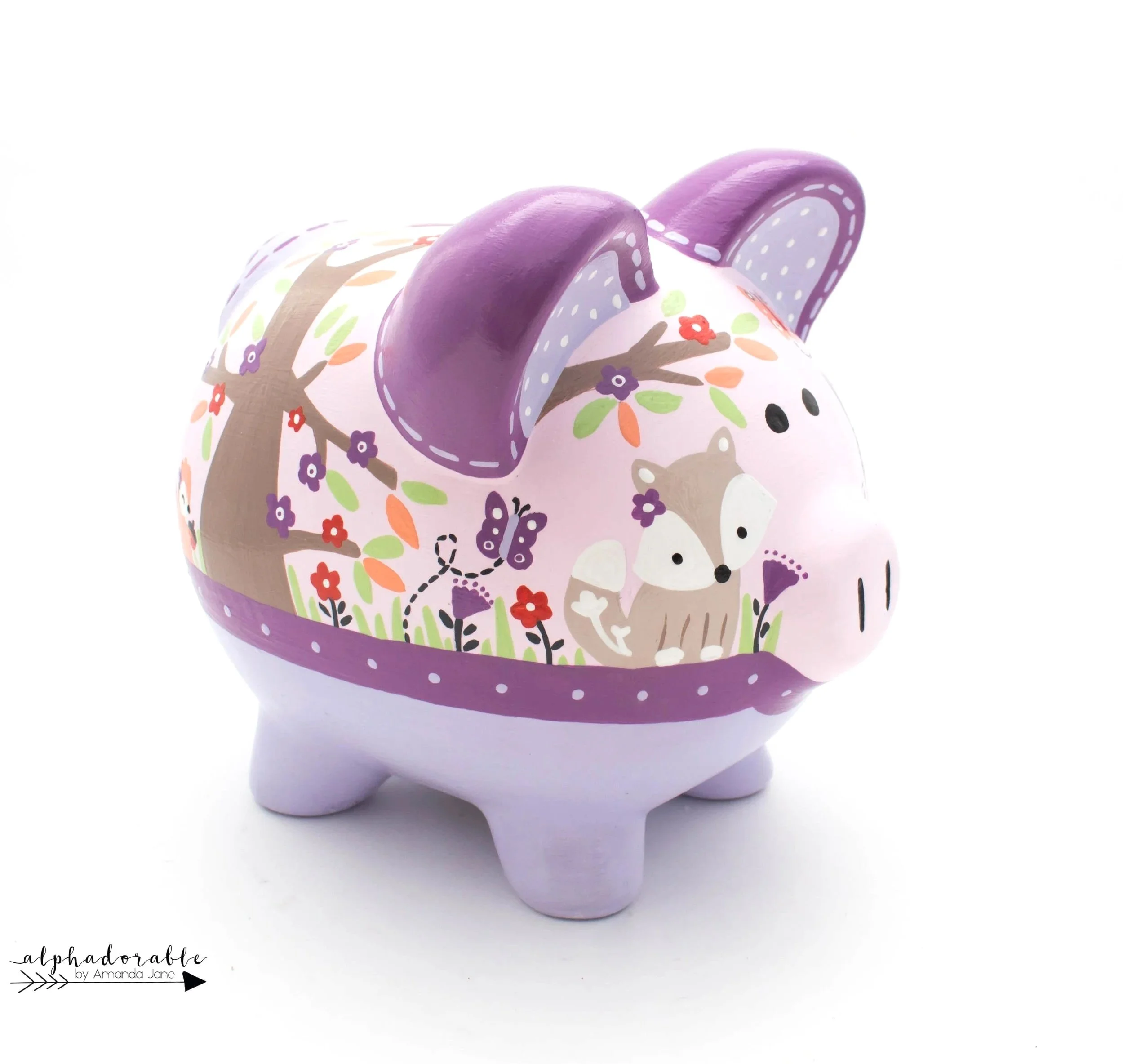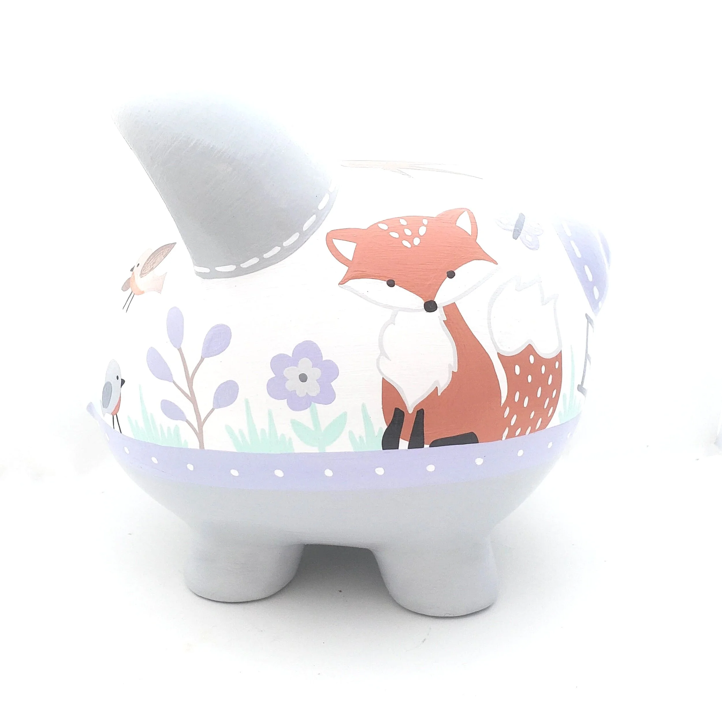 Woodland Whispers: Forest animal Personalized Piggy bank Cute Forest in lavender and grey Cute Forest in lavender and grey Cute Forest in lavender and grey Cute Forest in lavender and grey Cute Forest in lavender and grey
