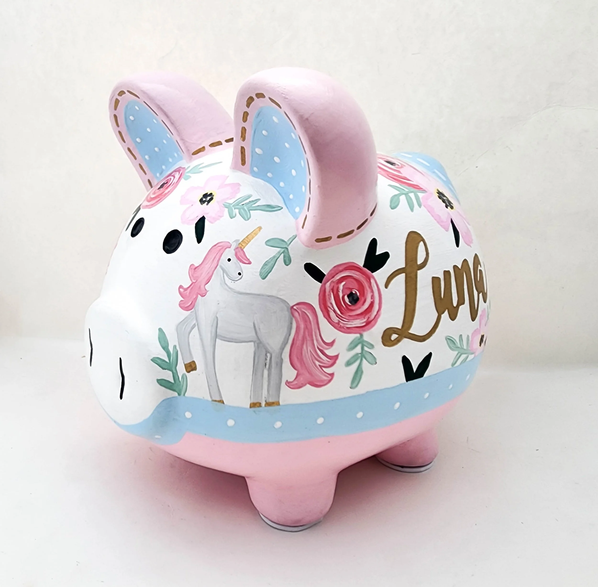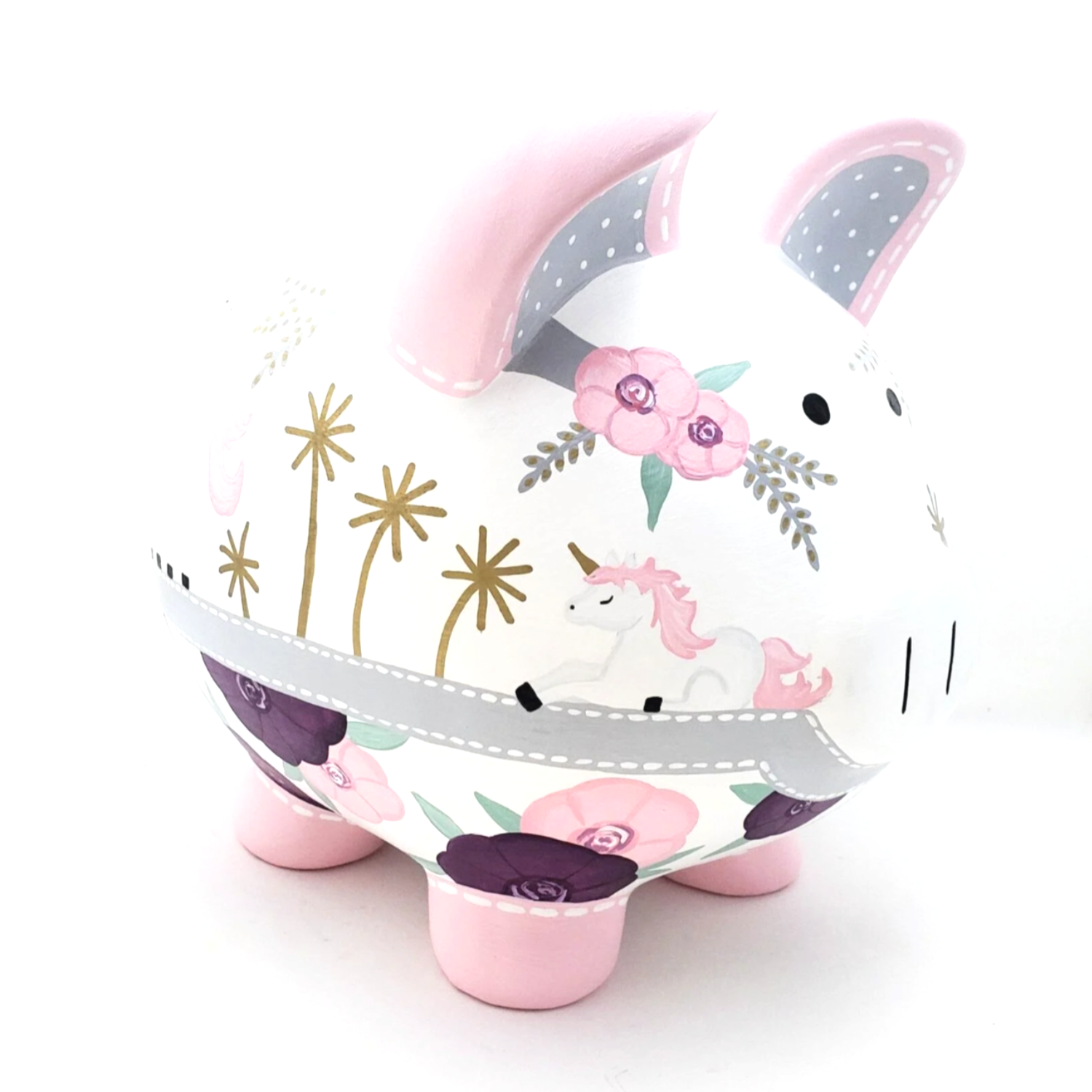 Unicorn Bloom: floral Piggy bank in pink and gold Unicorn floral in pink, grey and gold personalized piggy bank Unicorn floral in pink, grey and gold personalized piggy bank Unicorn floral in pink, grey and gold personalized piggy bank Unicorn floral in pink, grey and gold personalized piggy bank Unicorn floral in pink, grey and gold personalized piggy bank