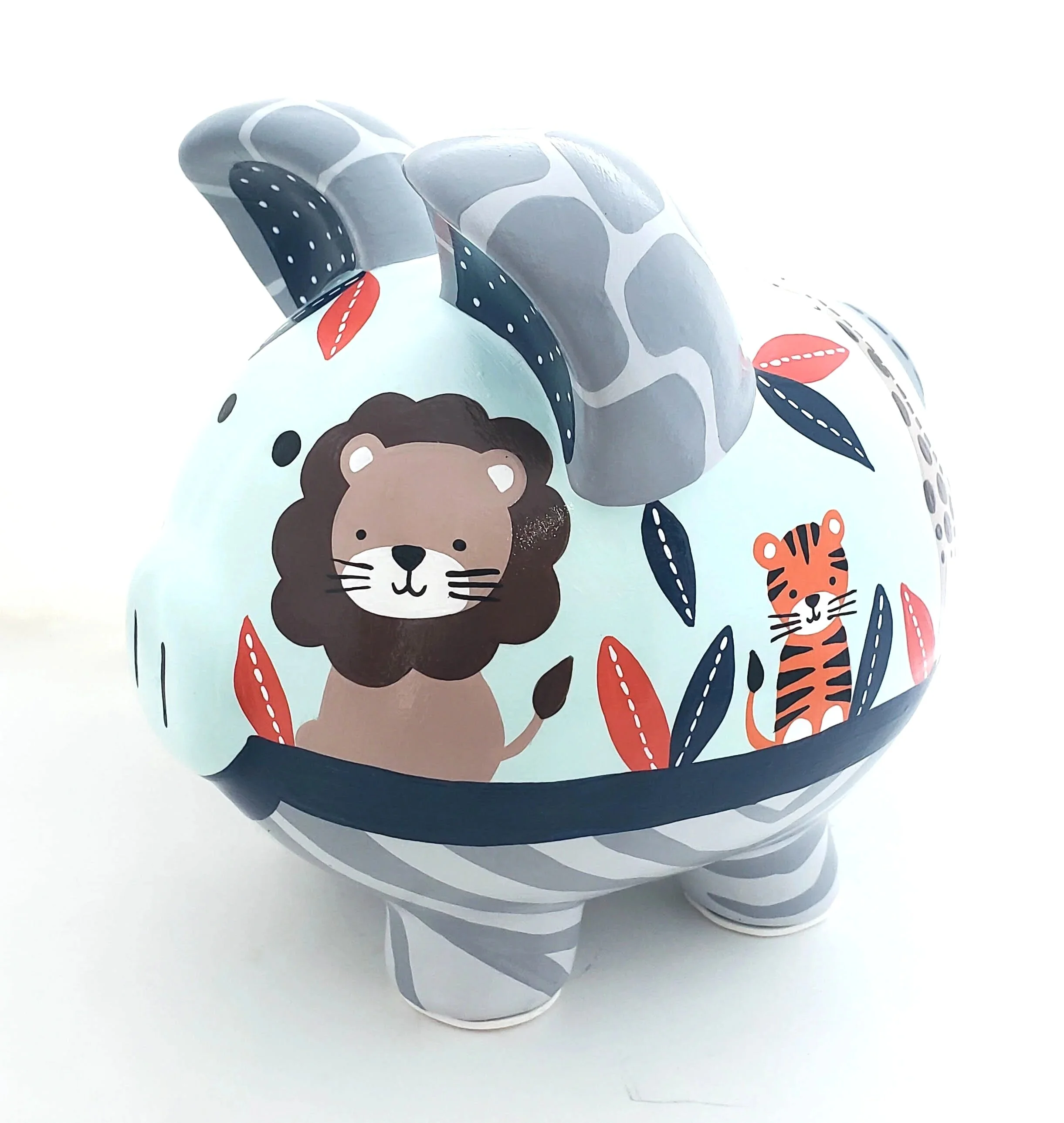 Jungle Dreams: Safari animal piggy bank Mint Green and grey jungle animal  piggy bank Mint Green and grey jungle animal  piggy bank Mint Green and grey jungle animal  piggy bank Mint Green and grey jungle animal  piggy bank Mint Green and grey jungle animal  piggy bank