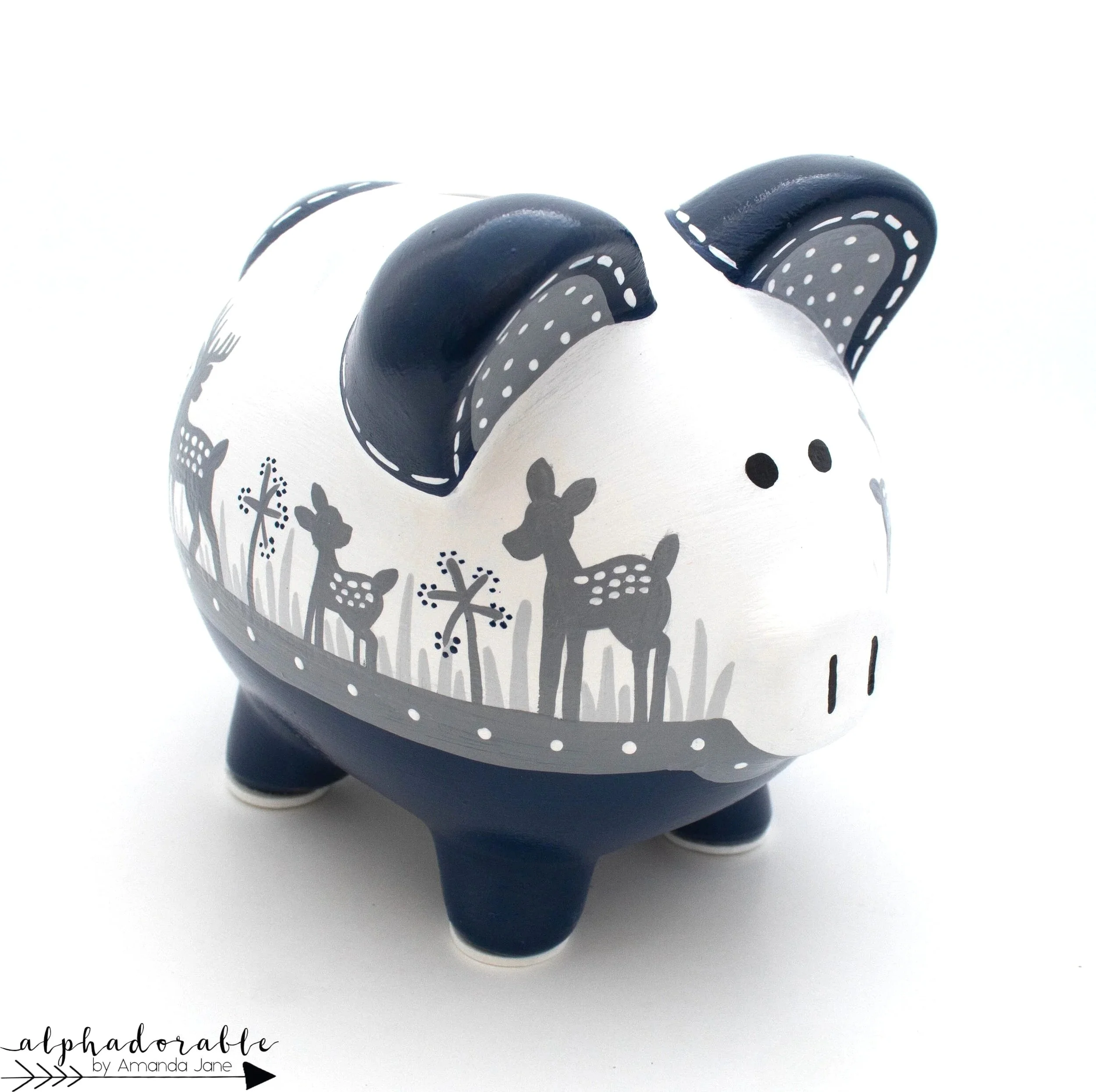 Moonlight Meadow: Woodland Forest Piggy Bank with Deer