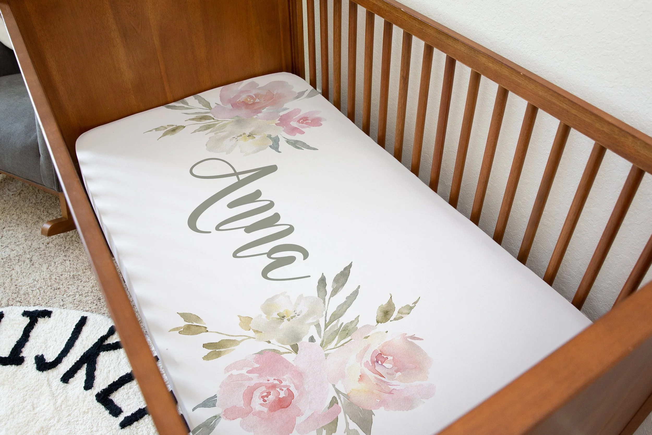 Jolie Floral: Blush Flower Personalized Jersey Crib Sheet Jolie Floral: Blush Flower Personalized Jersey Crib Sheet Jolie Floral: Blush Flower Personalized Jersey Crib Sheet